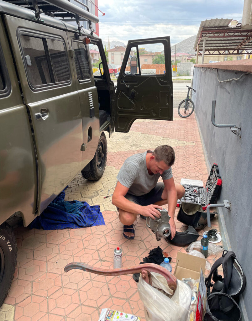 “Verder gingen we natuurlijk wel de goede kant op. Een UAZ voelt zich het fijnst binnen de EU en richting het Oosten. Er rijden in Georgië en Armenië veel dezelfde soort wagens rond, zoals de Volga of de UAZ 469, met dezelfde techniek en motor als de Bukhanka oldtimer. In elke autozaak zagen wij wel een koppakking of koppelingscilinder passend op onze bus. Het nieuwe model UAZ rijdt daar amper rond – te duur wellicht – dus ook een stuk minder onderdelen. Iedere monteur kan een UAZ repareren, maar je moet de onderdelen wel hebben. Daar loopt het vaak op spaak. Dus zorg ervoor dat je veel bij je hebt, of makkelijk aan de benodigde onderdelen kan komen, is onze tip.”